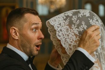 Во время свадебной церемонии жених медленно приподнял фату невесты, чтобы поцеловать ее, но увидел под