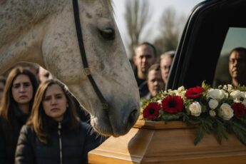 Во время похорон, когда гроб погрузили в машину, неожиданно появилась лошадь: лошадь медленно подошла к гробу, и то, что она сделала, шокировало всех 😱😱 Во время похорон, когда гроб уже собирались загрузить в машину, неожиданно появилась лошадь. Белая, запыхавшаяся, с грязью на боках, но с живыми, полными боли глазами. Она медленно подошла к людям, а потом — прямо к гробу. То, что произошло дальше, повергло всех в шок. Когда умер её хозяин, в тот же день лошадь вырвалась из стойла и убежала. Никто не понял, куда. Родные покойного были слишком заняты подготовкой к похоронам, чтобы искать её. Два дня никто не видел животное — казалось, оно просто исчезло. А ведь лошадь чувствовала уход хозяина. Они были вместе почти десять лет — он растил её с жеребёнка, говорил с ней, как с человеком, кормил с ладони, лечил, когда она заболела. Лошадь знала его голос, шаги, даже настроение. И вот настал день похорон. Люди стояли, плакали, поминали усопшего. Но именно в тот момент, когда несколько мужчин подняли гроб, чтобы погрузить его в катафалк, со стороны леса выбежала та самая белая лошадь. Она резко остановилась, громко заржала, будто требуя уступить дорогу. Люди инстинктивно расступились. Лошадь уверенными шагами подошла к гробу, опустила голову и вдруг сделала то, от чего все присутствующие были в шоке 😲😨 Продолжение в первом комментарии 👇👇 Во время похорон, когда гроб погрузили в машину, неожиданно появилась лошадь: лошадь медленно подошла