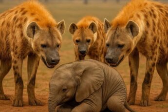 Стая гиен окружила маленького и беспомощного слоненка, готовая напасть, но вы не поверите кто именно пришел ему на помощь 😱😱 Слонёнок только недавно научился держаться на ногах и с восторгом исследовал мир. Стадо двигалось привычным маршрутом от водоёма к водоёму, через заросли акаций и высокую траву. Вела их старая самка — мудрая матриарх, а рядом со взрослым самцом держалась мать слонёнка, время от времени нежно касаясь малыша хоботом. Любопытство оказалось сильнее. Пока взрослые копали корни и листья, слонёнок заметил яркую бабочку и, радостно хлопая ушами, побежал за ней. Он играл, подбрасывал комья травы, трубил — и не заметил, как оказался далеко от стада. Когда же оглянулся, вокруг простиралась лишь бескрайняя пустынная равнина. Слонёнок остановился, а в животе зародился страх. В этот момент кусты затрещали — из них показались гиены. Восемь взрослых особей окружили малыша. Их глаза горели жёлтым светом, зубы блеснули в предвкушении лёгкой добычи. Слонёнок растопырил уши, затрубил, пытаясь отпугнуть хищников. Но те лишь приближались плотнее. Одна из гиен рванулась и когтями рассекла бок малыша. Он взвизгнул и жалобно позвал мать. Стадо услышало зов, и огромная самка бросилась на помощь, но расстояние было слишком велико — она не успевала. И в этот момент слоненку пришел на помощь он… 😱😱 Продолжение в первом комментарии 👇👇 Стая гиен окружила маленького и беспомощного слоненка, готовая напасть, но вы не поверите кто именно