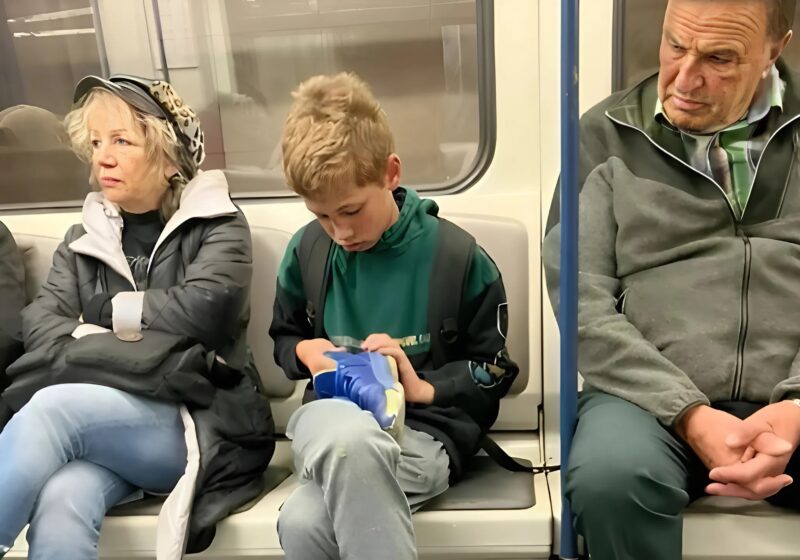 На очередной остановке двери открылись, и в вагон вошёл мальчик лет десяти. Он выглядел так, будто сбежал с уроков — лохматый, в мятых шортах, с одной потрёпанной кроссовкой в руке. Но главное — он был босиком. На одной ноге — тонкий полосатый носок. Он сел на свободное место между двумя пассажирами и пытался не привлекать внимания.