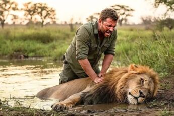 Мужчина спас из реки льва, который чуть не утонул, но когда они оказались на суще, лев сделал кое-что неожиданное 😱🫣 Жаркое солнце клонилось к закату, окрашивая саванну в золотисто-оранжевые тона. Туристы возвращались в лагерь после долгого дня сафари, когда один из них заметил странное движение у реки. В мутной воде барахталась массивная тень, и лишь приглядевшись, мужчина понял — это лев. Огромный хищник, гордый царь зверей, тонул в глубокой реке, отчаянно пытаясь удержаться на плаву. Он сразу догадался: что-то не так. Львы умеют плавать, но этот явно был ранен и ослаблен. И в тот миг, когда все остальные застыли от ужаса, мужчина не колебался ни секунды. Сбросив рюкзак и камеру, он бросился в воду. Холодная река встретила его сильным течением. Вытянуть льва на берег казалось невозможным — тело хищника было тяжелым, шерсть намокла и тянула вниз. Мужчина напрягал все мышцы, с каждой секундой дыхание становилось тяжелее. Но мысль, что этот зверь погибнет на его глазах, гнала его вперед. Подхватив льва под шею, он буквально тянул его из реки. Наконец, с невероятным усилием, он выволок животное на берег. Лев лежал неподвижно, его грудь не поднималась. В отчаянии мужчина опустился рядом и начал сердечный массаж. Его ладони били в сильную, но безжизненную грудь зверя, снова и снова. В ушах стучала кровь, руки сводило от напряжения, но он продолжал, стиснув зубы. Прошло несколько мучительных минут. И вдруг — едва заметный вдох. Потом еще один. Тело льва дернулось, и огромные янтарные глаза медленно открылись. Мужчина отпрянул назад. Когда зверь, шатаясь, поднялся на лапы, сердце мужчины готово было выскочить из груди. Он понял: сейчас все закончится, ему пришел конец, ведь перед ним хищник. Лев не различит друга или врага. Инстинкт возьмет верх. В этот момент животное медленно подошло к нему и случилось кое-что неожиданное 😱😱 Продолжение в первом комментарии👇👇 Мужчина спас из реки льва, который чуть не утонул, но когда они оказались на суще, лев сделал кое-что