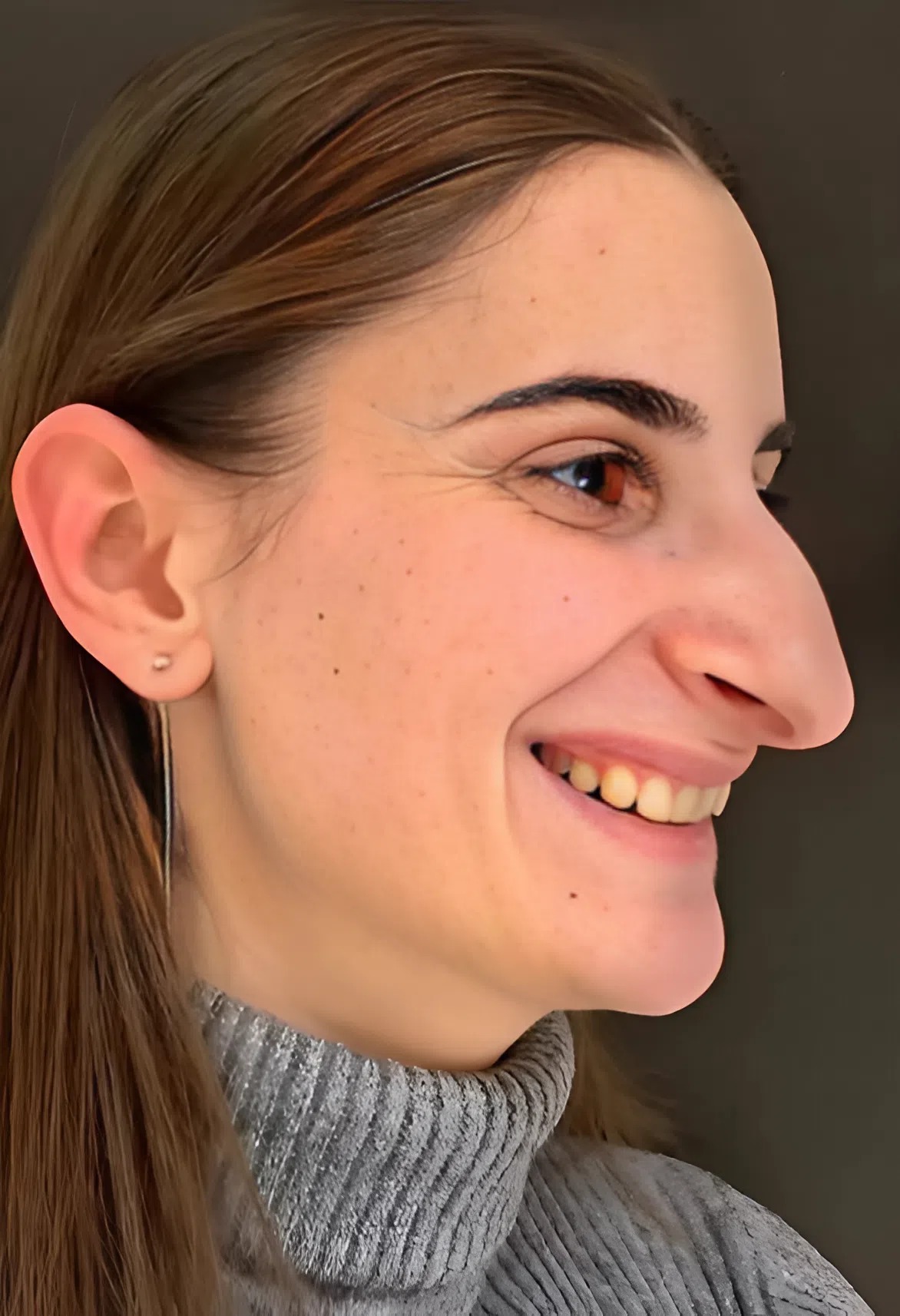 Эта девушка пришла к Ахмету Дилберу с носом, который, по её словам, приносил ей массу дискомфорта. Её нос отличался не только крупными размерами, но и выразительной горбинкой, опущенным кончиком и удлинёнными продолговатыми ноздрями. Вместе эти особенности придавали лицу тяжесть и некую диспропорцию, что вызывало у пациентки множество комплексов. Как она сама рассказывала, с возрастом она всё больше замыкалась в себе, испытывая неуверенность, особенно когда приходило время фотографироваться. Она старалась избегать внимания и мечтала о том, чтобы изменить свой внешний вид и, наконец, почувствовать себя комфортно в своей коже.