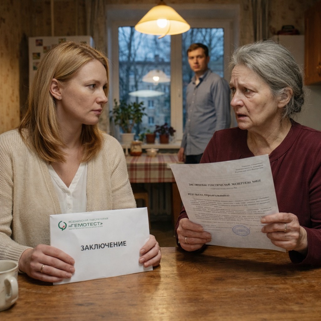 Раиса Николаевна не пошевелилась. Стояла и смотрела на белый прямоугольник с логотипом лаборатории — как смотрят на что-то, чего боятся. Потом медленно, тяжело опустилась на стул.