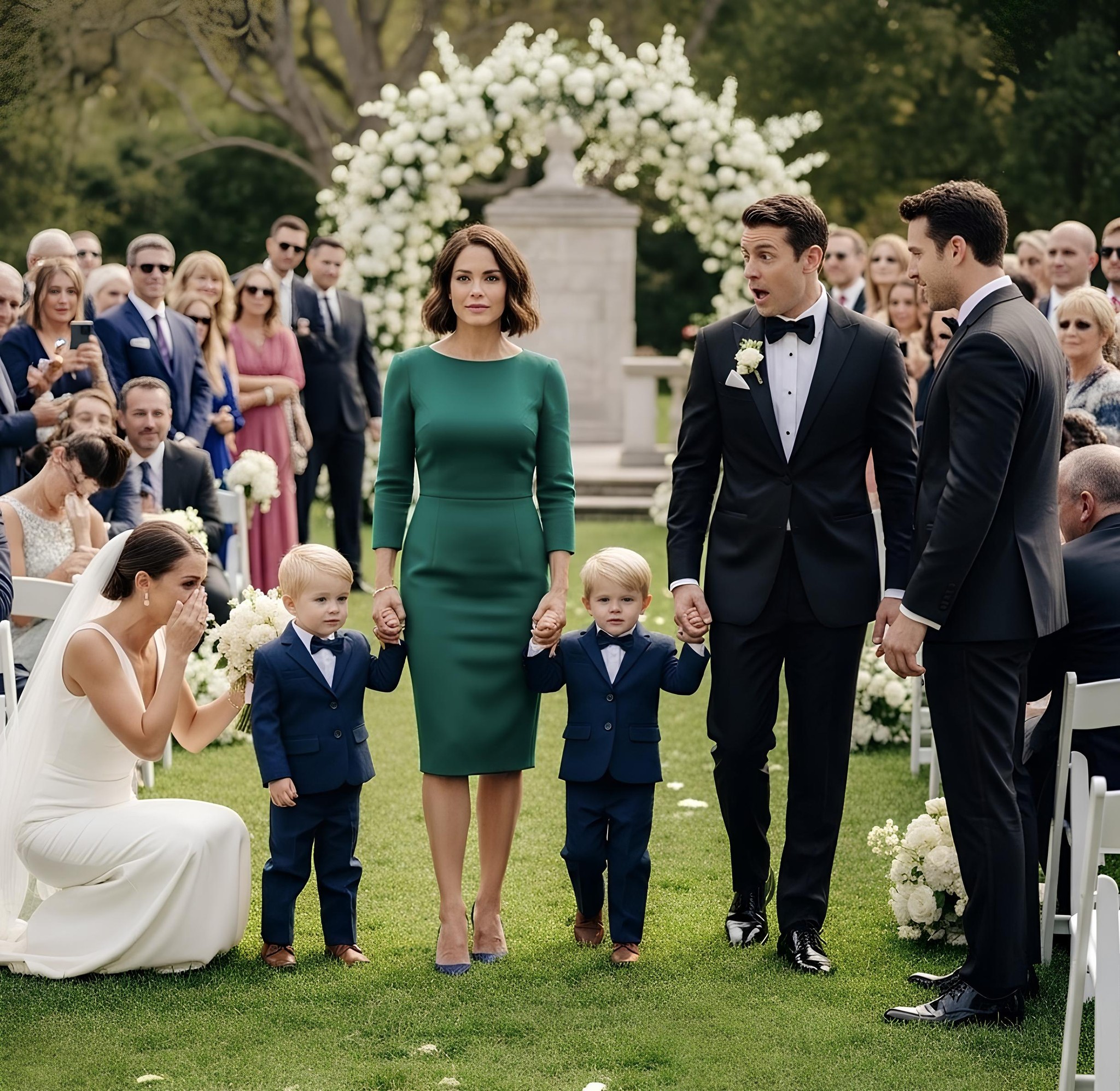 Ліла тихо увійшла до внутрішнього двору, одягнена в темно-синю сукню, яка ледь помітно підкреслювала її фігуру. Її волосся було зав’язане назад, а по обидва боки від неї стояли дитина — хлопчик і дівчинка, обом приблизно по шість років. Їхні погляди віддзеркалювали один одного: допитливі, спокійні, з широко розплющеними, уважними очима.