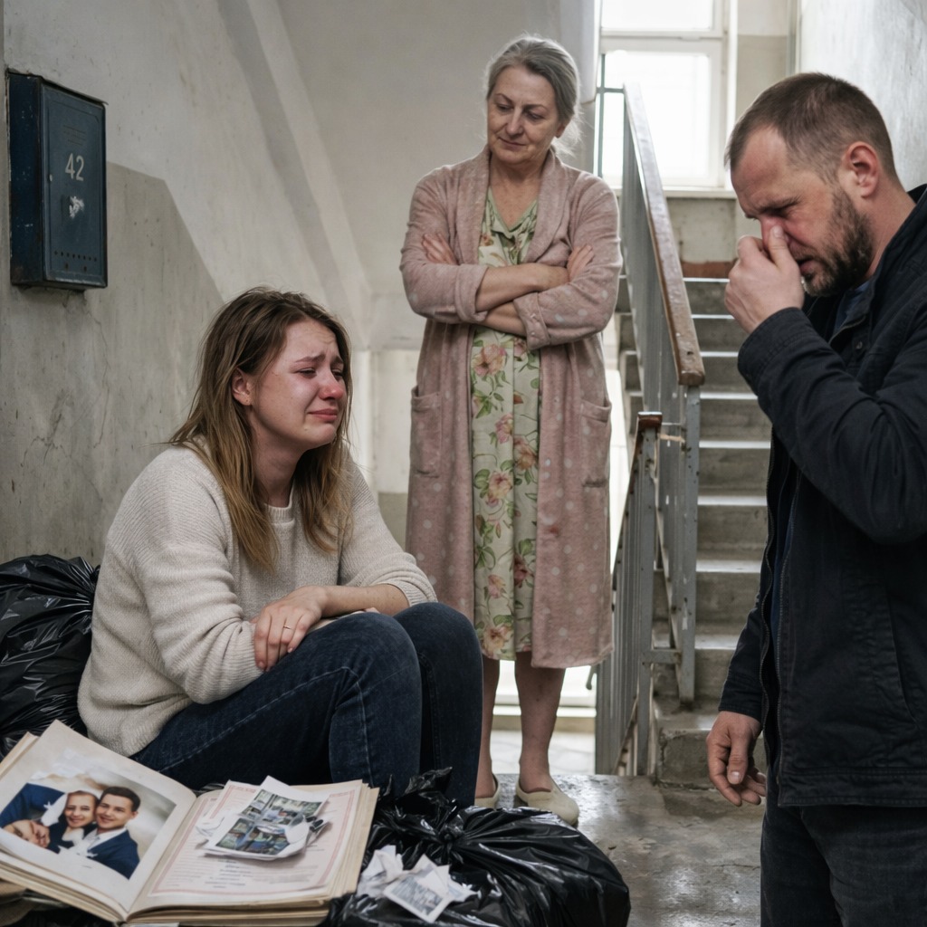 Чёрные мусорные мешки валялись на лестничной клетке. Один порвался, из него торчал угол свадебного альбома — того самого, что муж подарил мне на первую годовщину. Я стояла на площадке третьего этажа, сжимая ключи, которые больше не поворачивались в замке. За спиной свекрови маячил Олег. Пять лет мы прожили вместе, откладывая каждую копейку на ремонт этой двушки.