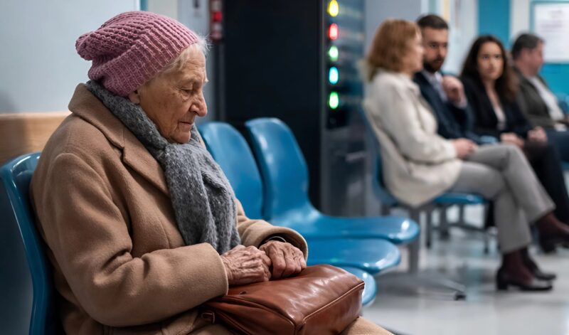 Над пожилой женщиной в приёмной больницы тихо посмеивались — пока один вопрос врача не заставил весь зал замолчать…