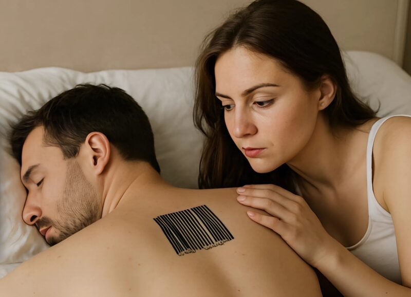 Пока муж спал, я заметила на его спине странную татуировку в виде штрих-кода: я отсканировала код и чуть не потеряла сознание 😲😲