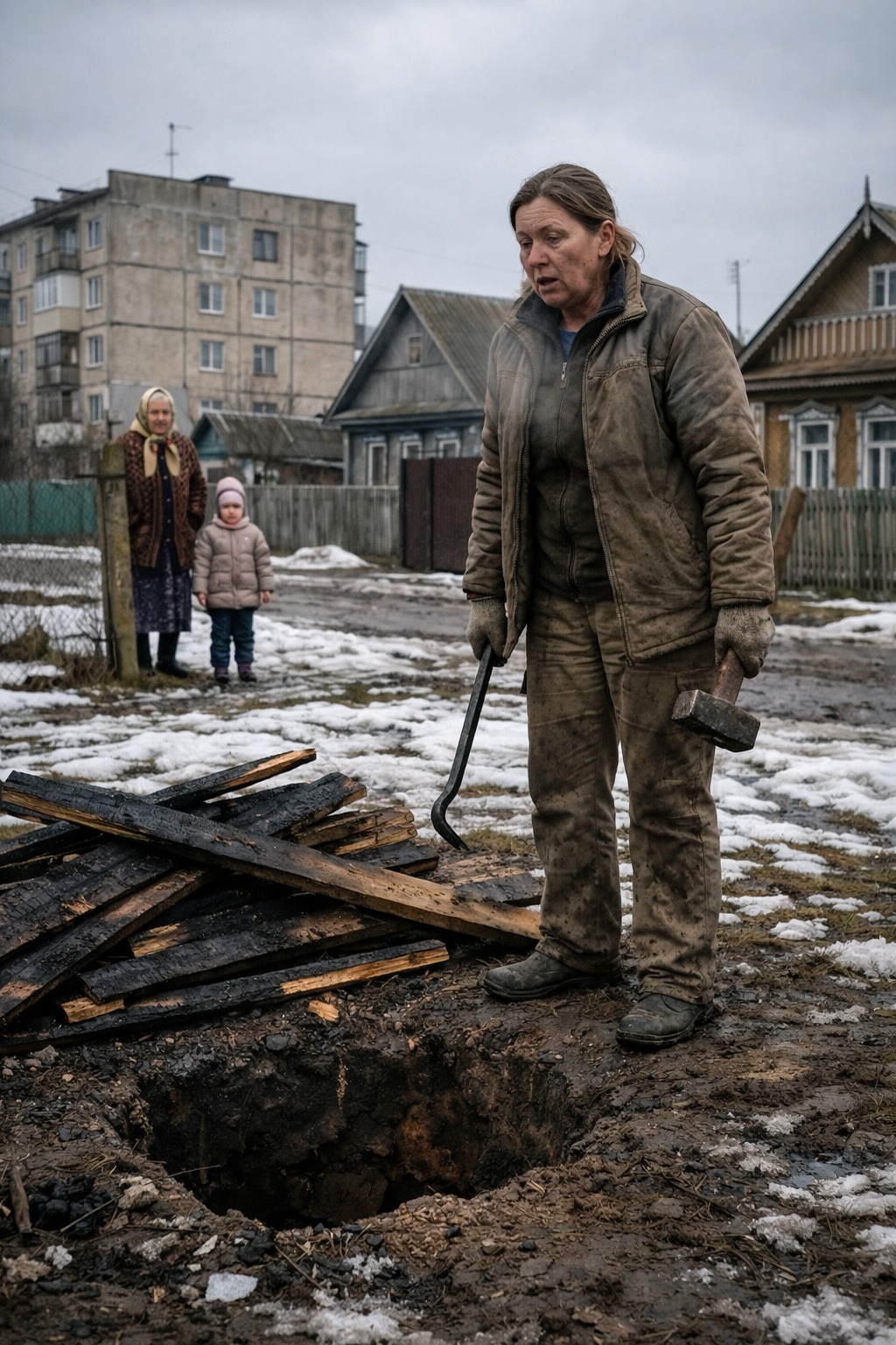 Она подняла кувалду и ударила ещё раз. Бетон начал крошиться. Через несколько минут в центре плиты появилась трещина. Марина поддела край ломом и с усилием сдвинула кусок бетона в сторону.