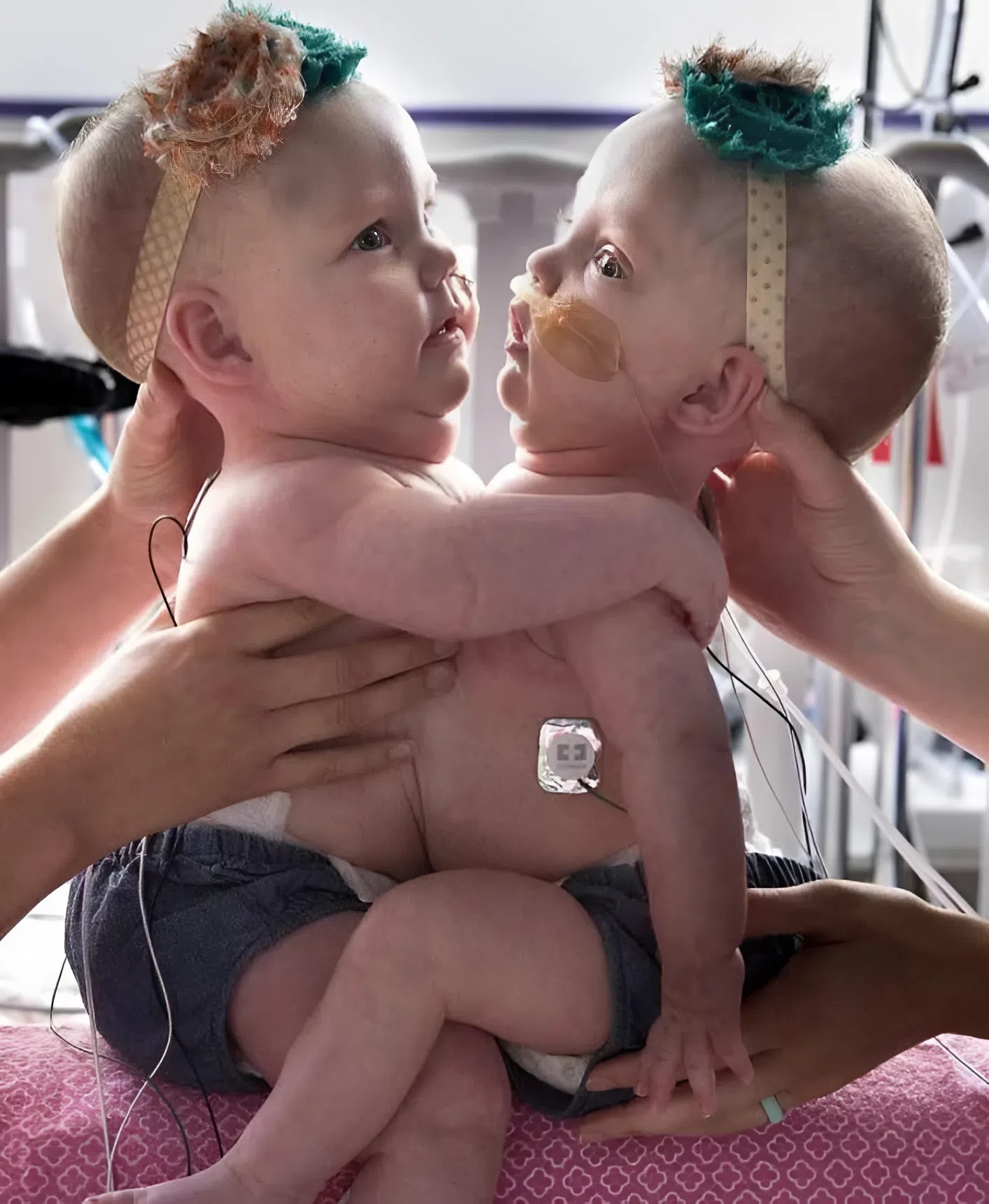 Но сросшиеся тела не давали им возможности нормально развиваться. Их особо настороженные родители беспокоились о том, как будет проходить жизнь их дочерей. Девочки не могли сидеть, поворачиваться или даже просто удобно лежать, что создавало множество трудностей для здоровья и комфорта. Каждое утро родители приходили в больницу, чтобы поддерживать девочек, с любовью обнимая их, но всегда осторожно, так как все действия требовали особого подхода. Им не удавалось взять каждую по отдельности на руки — приходилось поднимать их вместе, поддерживая общую грудную клетку, и, несмотря на всю нежность, это было физически трудно.