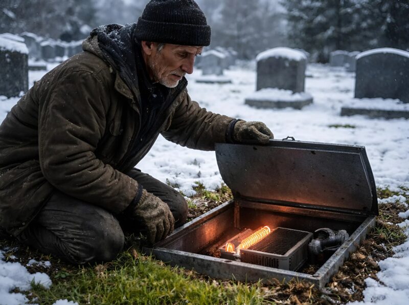 Он осторожно расчистил землю вокруг металлического короба и увидел толстый кабель, уходящий в сторону старой ограды. Короб был тёплым на ощупь, несмотря на мороз.