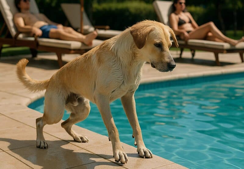 Собака неожиданно прыгнула в бассейн: отдыхающие начали возмущаться, пока пес не вышел из воды, ведь в зубах он держал кое-что страшное