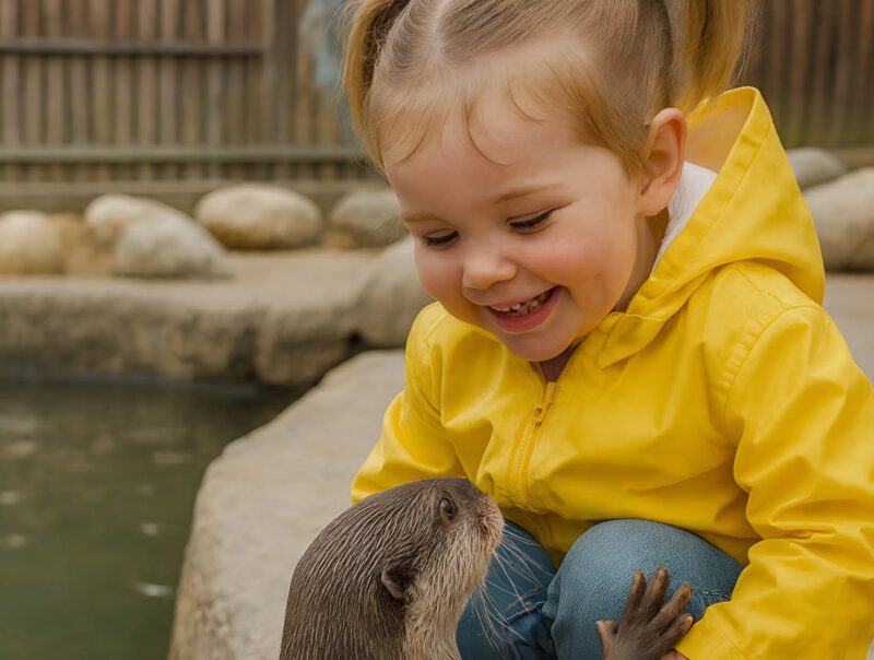 Девочка присела и начала гладить её по мокрой шерсти. Выдра не убегала, наоборот — прижалась к её колену, трогала ладони, шевелила усами, будто обнюхивая.