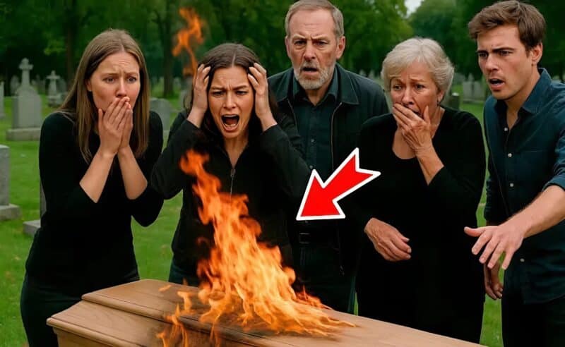 Когда гроб начали опускать в землю, раздался странный треск, будто где-то рядом лопнуло дерево. Несколько человек обернулись, но не успели ничего сказать — через секунду из-под крышки гроба вырвался огонь.