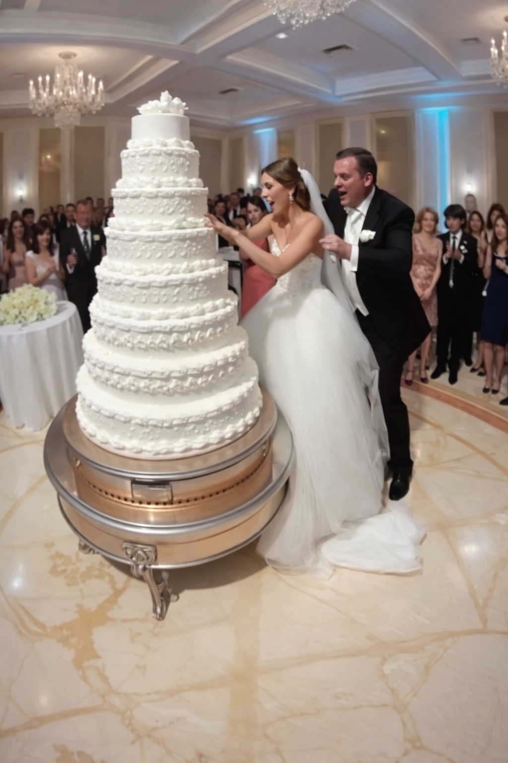 Когда мы подошли к свадебному торту, зал затих. Я взяла нож, улыбнулась гостям — и в этот момент мой муж неожиданно толкнул меня сзади. Я потеряла равновесие, упала прямо на торт, а потом — на пол.