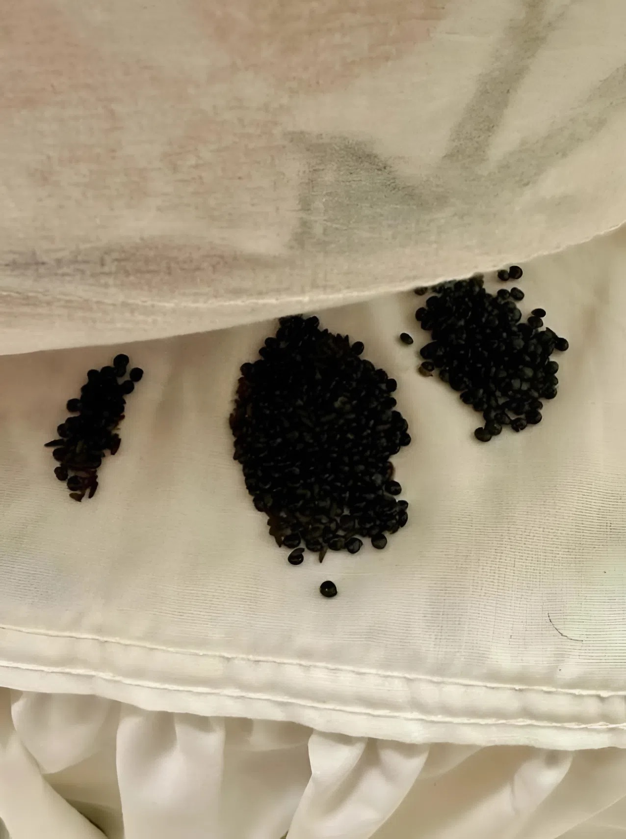 В тот день я решила перевернуть матрас, просто чтобы проветрить и почистить постель. Всё шло как обычно — пока я не заметила в углу кровати странную кучку мелких чёрных зёрен.